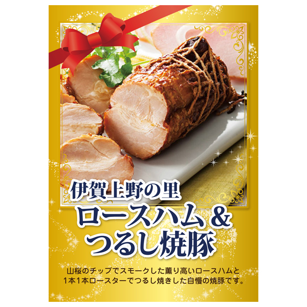 | 内容 | JAS特級ロースハム(250g)・つるし焼豚(170g)×各1 A4パネル×1 |