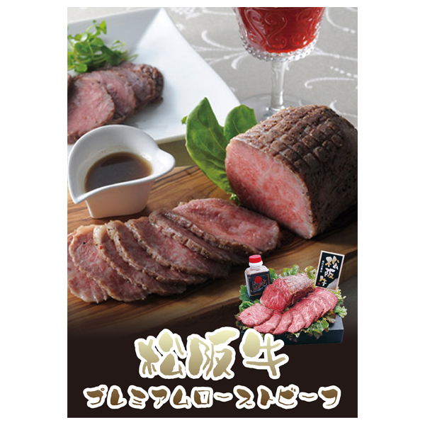 | 内容 | 松阪牛ローストビーフ(もも)(350g)・オリジナルソース(170g)×各1 A3パネル×1 |