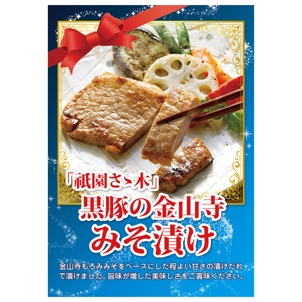 | 内容 | 「祇園さゝ木」黒豚の金山寺みそ漬け100g(もも肉80g・たれ20g)×4 A4パネル×1 |
