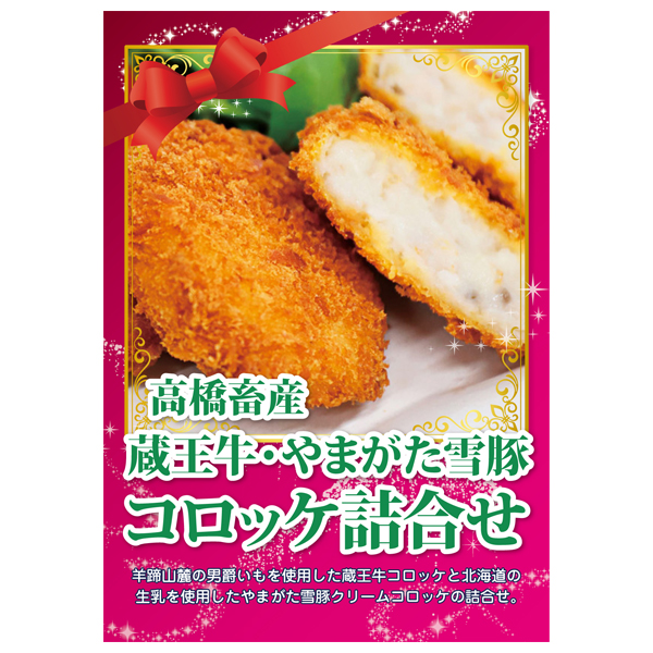 | 内容 | 蔵王牛コロッケ(80g×5個)・やまがた雪豚クリームコロッケ(65g×5個)×各2 A4パネル×1 |