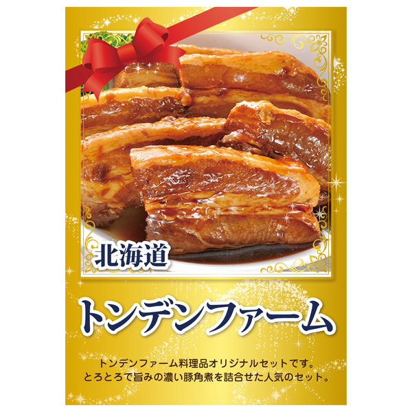 トンデンファーム料理品オリジナルセット。レストラン仕様のとろっとろで旨みの濃い豚角煮を詰合せた人気のセットになります。