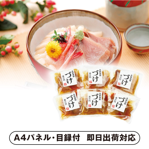 | 内容 | 海鮮づけ丼の具(80g)×6 A4パネル×1 |