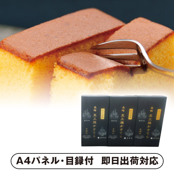 | 内容 | 和三盆糖入り長崎五三焼かすてら(215g)×3 A4パネル×1 |