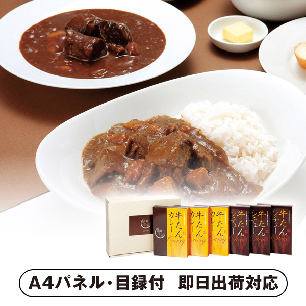 | 内容 | 牛たんシチュー(250g)・牛たんカレー(250g)×各3 A4パネル×1 |