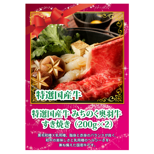 特選国産牛 みちのく奥羽牛 すき焼き(200g×2)【パネル・目録付】|景品ならPIARY(ピアリー)