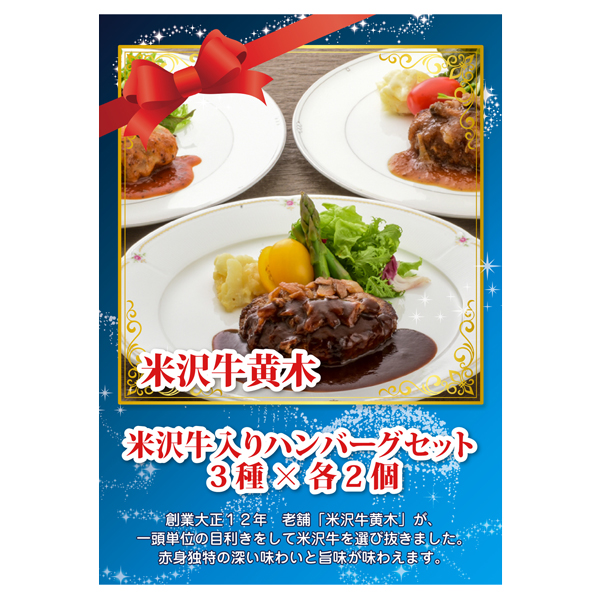 米沢牛黄木 米沢牛入りハンバーグセット 3種×各2個【パネル・目録付】|景品ならPIARY(ピアリー)