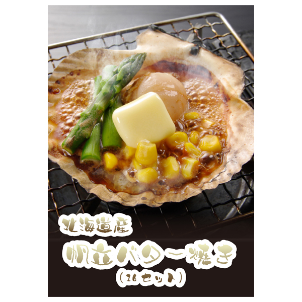 | 内容 | 帆立バター焼きセット(帆立片貝1枚、コーン10g、アスパラガス10g、バター1個)×16 A3パネル×1 |