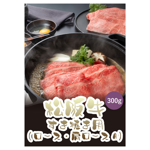 | 内容 | 松阪牛 すき焼き用(ロース・肩ロースA)300g、牛脂、パンフレット「美味しいお肉の召し上がり方」、松阪牛個体識別番号付き A3パネル×1 |