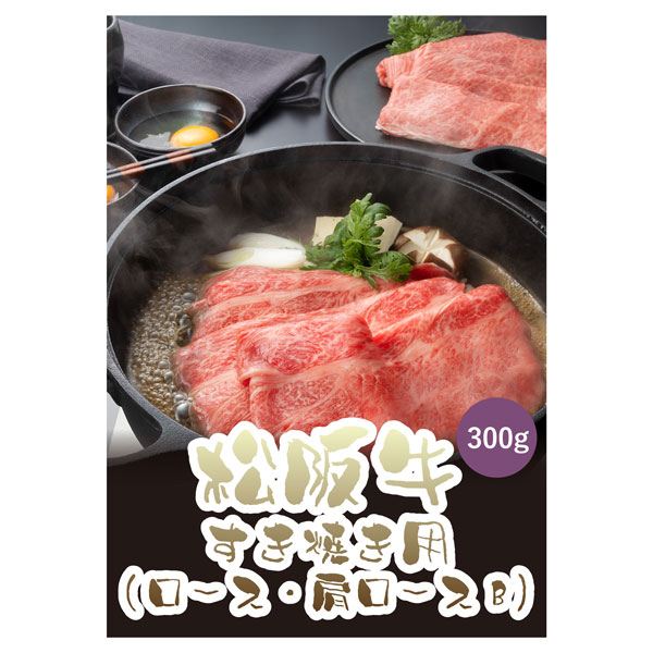 | 内容 | 松阪牛 すき焼き用(ロース・肩ロースB)300g、牛脂、パンフレット「美味しいお肉の召し上がり方」、松阪牛個体識別番号付き A3パネル×1 |