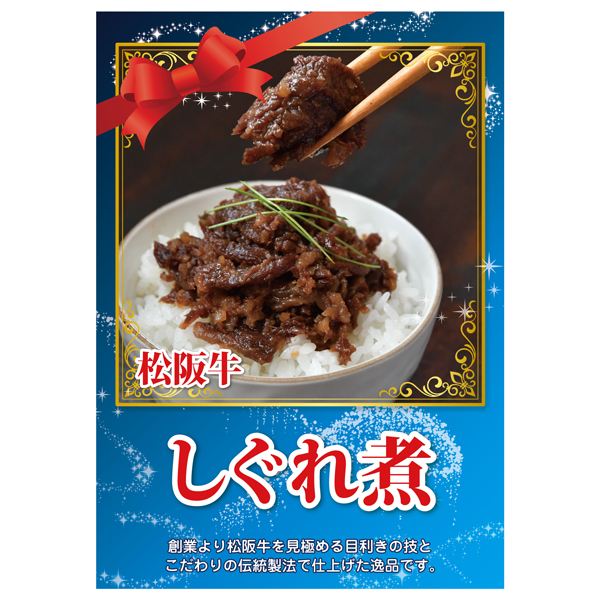 | 内容 | 松阪牛 しぐれ煮60g、松阪牛個体識別番号付き A4パネル×1 |