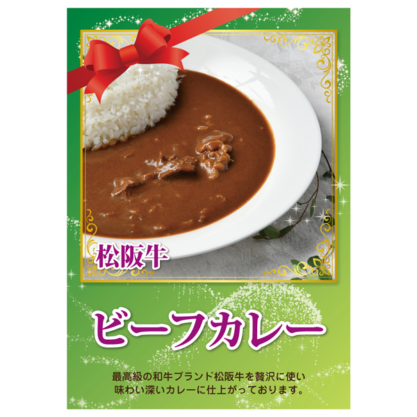 | 内容 | 松阪牛 ビーフカレー200g、松阪牛個体識別番号付き A4パネル×1 |