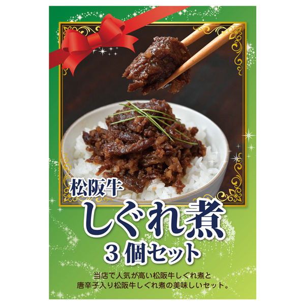 当店で人気が高い松阪牛しぐれ煮2個と松阪牛しぐれ煮(唐辛子入り)1個を詰め合わせしたギフトセットになります。