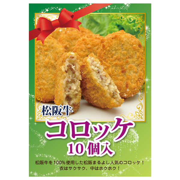 | 内容 | 松阪牛 コロッケ60g×10個、松阪牛個体識別番号、コロッケの美味しい揚げ方付き A4パネル×1 |
