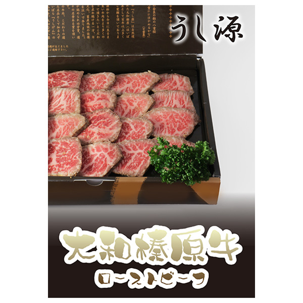 取材多数!特別なローストビーフ! 大和榛原牛のローストビーフ用に厳選したモモ肉を使い、ミシュランガイド掲載肉料理うし源のシェフが焼き上げました。味付けはシンプルに、火入れにこだわり、素材のお肉の味を楽しんで頂けるローストビーフです。取材多数、宇陀市名産品認定商品です。 披露宴、二次会、ゴルフコンペ、各種イベントなどで大活躍するA3サイズのパネル付きです。 写真映えも良く、当選者が喜ぶ様子をしっかり思い出に残せるのも魅力のひとつです。