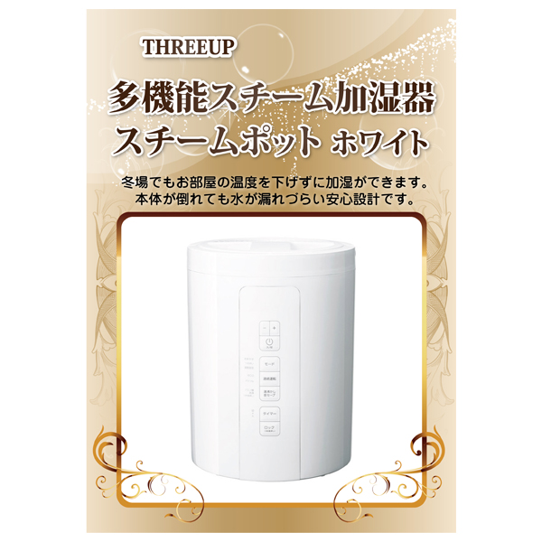 THREEUP 多機能スチーム加湿器「スチームポット」(ホワイト)【パネル・目録付】|景品ならPIARY(ピアリー)
