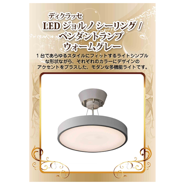 ディクラッセ LED ジョルノ シーリング/ペンダントランプ ウォームグレー【パネル・目録付】|景品ならPIARY(ピアリー)