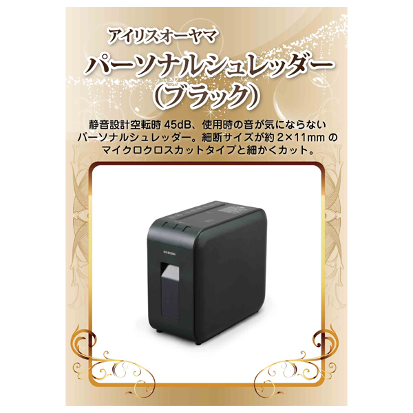 アイリスオーヤマ パーソナルシュレッダー(ブラック)【パネル・目録付】|景品ならPIARY(ピアリー)