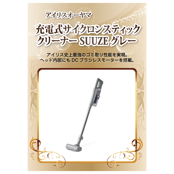 アイリスオーヤマ 充電式サイクロンスティッククリーナーSUUZE グレー【パネル・目録付】|景品ならPIARY(ピアリー)
