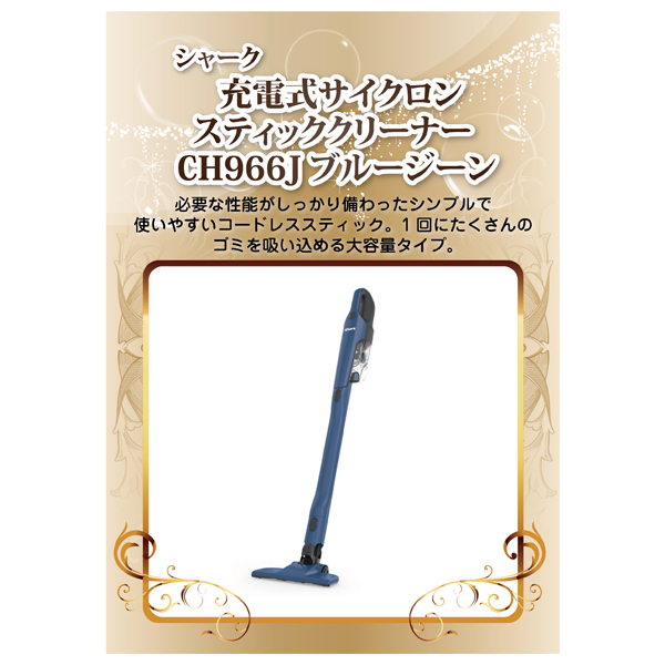 シャーク 充電式サイクロンスティッククリーナー CH966J ブルージーン【パネル・目録付】|景品ならPIARY(ピアリー)