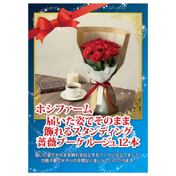 ホシファーム 届いた姿でそのまま飾れるスタンディング薔薇ブーケ ルージュ 12本【パネル・目録付】|景品ならPIARY(ピアリー)
