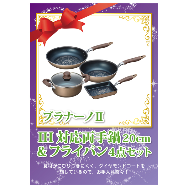 ブラナーノII IH対応両手鍋20cm&フライパン4点セット【パネル・目録付】|景品ならPIARY(ピアリー)