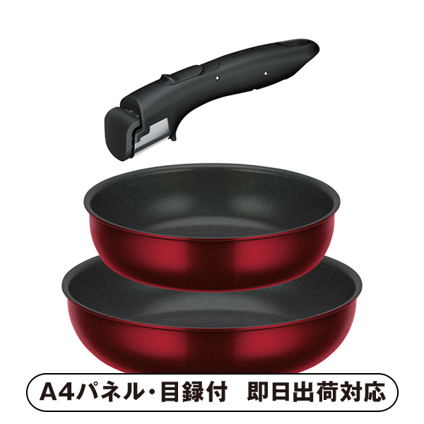 | 内容 | フライパン22cm(約235×235×60mm)・フライパン26cm(約275×275×65mm)・取っ手×各1 A4パネル×1 |