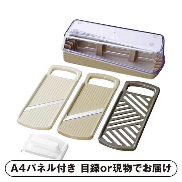 | 内容 | 本体(約235×85×88mm)・収納ケース・容器・スライサー・千切り・おろし・安全ホルダー×各1 A4パネル×1 |
