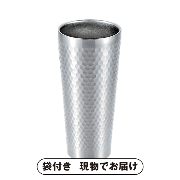 美味しさが持続する断熱二重構造のタンブラー。内側と外側が二重構造になっているため、保冷・保温効果が高いのが特徴です。スマートなシルエットに存在感が際立つ槌目模様。大容量サイズでご自宅用にもおすすめです。
