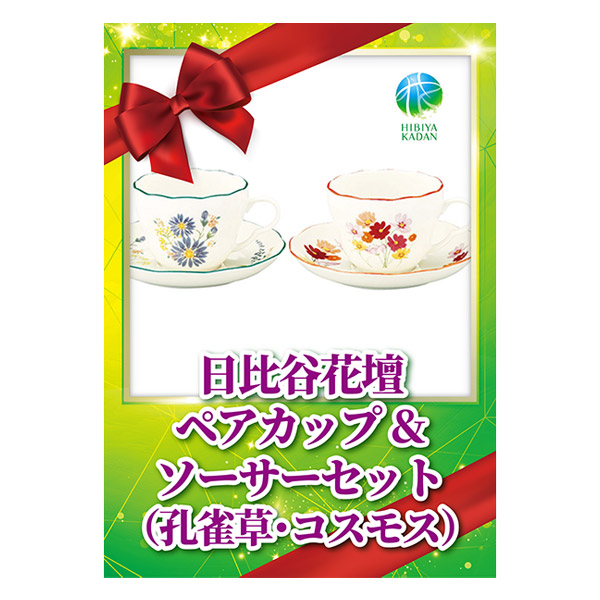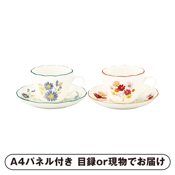 日比谷花壇 ペアカップ&ソーサーセット(孔雀草・コスモス)【パネル・目録付】|景品ならPIARY(ピアリー)
