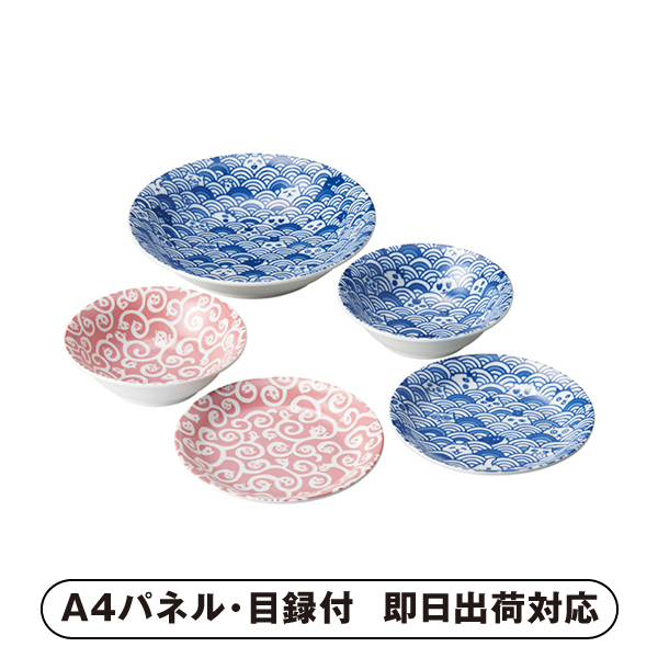 | 内容 | プレート(約直径160×20mm)・ボウル(約直径140×40mm)×各2、深皿(約直径210×40mm)×1 A4パネル×1 |