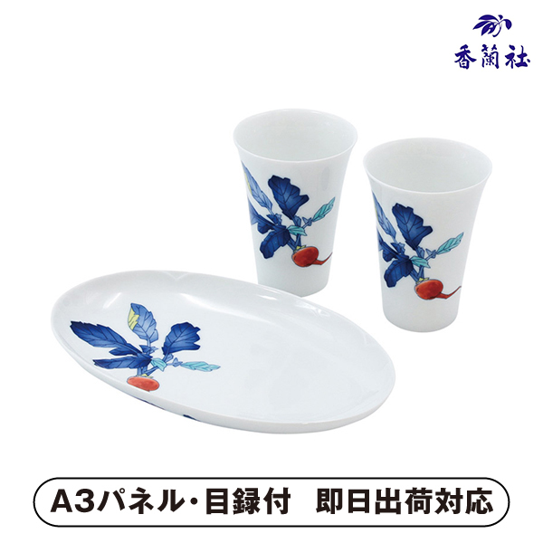 香蘭社のカップとプレートによるスナックセット。上質な有田焼の美しいデザインが、ティータイムやおもてなしに華やぎを添え、日常使いから特別な贈り物まで喜ばれる逸品です。優雅なひとときを演出します。