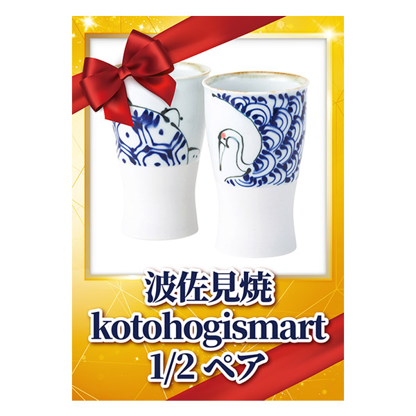 長寿を祈願する鶴と亀のデザイン。持ち易い形状とサイズ感の陶製グラスペアセットです。和を感じる手描き感のある素朴なデザインで、年配の方への贈り物にもおすすめ。食洗機対応なので、手入れのしやすさもポイントです。