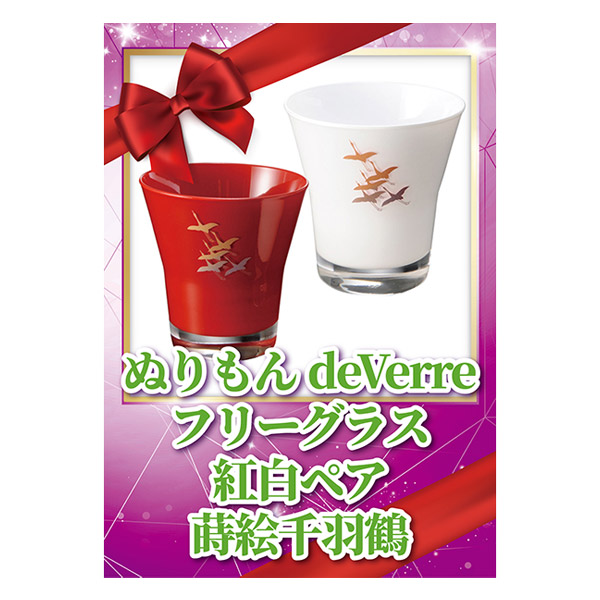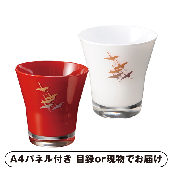 ぬりもんde Verre フリーグラス紅白ペア 蒔絵 千羽鶴【パネル・目録付】|景品ならPIARY(ピアリー)