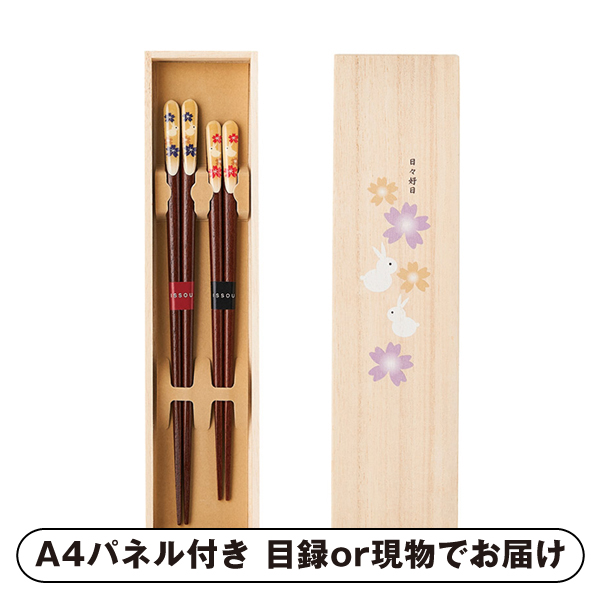 若狭塗 吉兆桐箱入 夫婦箸 楽うさぎ【パネル・目録付】|景品ならPIARY(ピアリー)