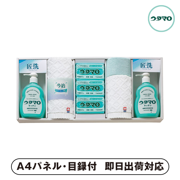 | 内容 | ウタマロ洗濯石鹸(133g)×3、ウタマロキッチン(300ml)・ウォッシュタオル(280×300mm)×各2、マイクロファイバークロス(250×250mm)×1 A4パネル×1 |