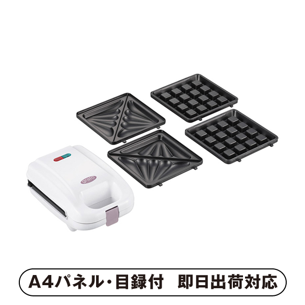 | 内容 | 本体(約230×150×110mm)×1、ホットサンドプレート・ワッフルプレート×各2 A4パネル×1 |