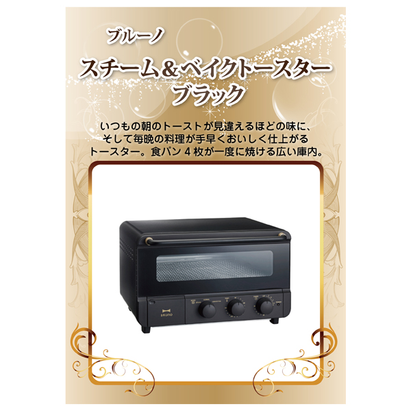 | 内容 | 加熱モード(スチーム、コンベクション、ノーマル)、温度調節、タイマー30分 本体:約37×35×23cm、約4,800g A3パネル×1 |