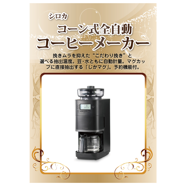 シロカ コーン式全自動コーヒーメーカー【パネル・目録付】|景品ならPIARY(ピアリー)