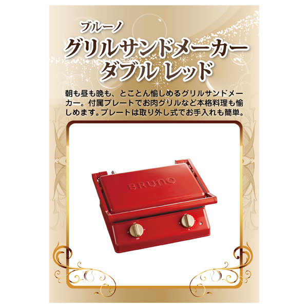 ブルーノ グリルサンドメーカー ダブル レッド【パネル・目録付】|景品ならPIARY(ピアリー)