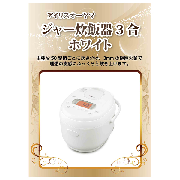 アイリスオーヤマ ジャー炊飯器 3合 ホワイト【パネル・目録付】|景品ならPIARY(ピアリー)