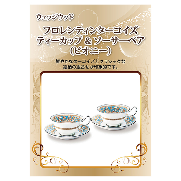 ウェッジウッド フロレンティン ターコイズ ティーカップ&ソーサ― ペア(ピオニー)【パネル・目録付】|景品ならPIARY(ピアリー)