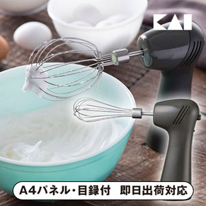 手入れが楽、軽さ・コンパクトさに重点を置いたホイッパー。用途によって大小2種類の羽を使い別け。小は200ML計量カップで使用可能。