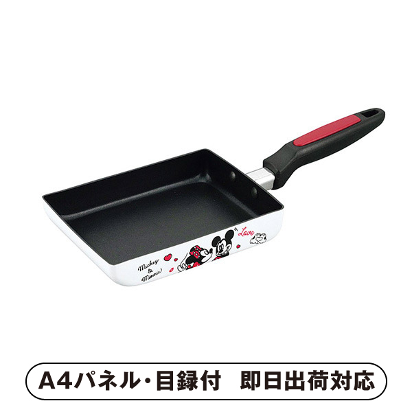 かわいいミッキー&ミニーが描かれた玉子焼き専用のフライパン。四角い玉子焼きが焼けます。
