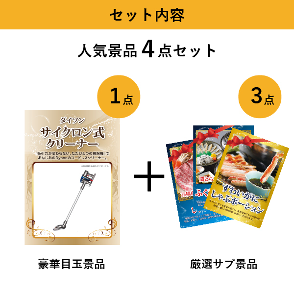 「ダイソン サイクロン式クリーナー」をメイン景品とした、メイン景品1点とサブ景品3点を合わせたセット!