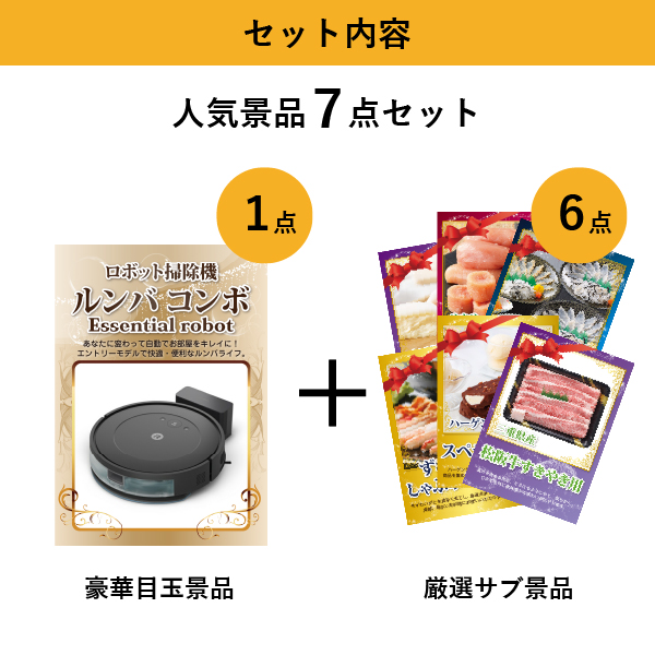「iRobot ロボット掃除機 ルンバ」をメイン景品とした、メイン景品1点とサブ景品6点を合わせたセット!