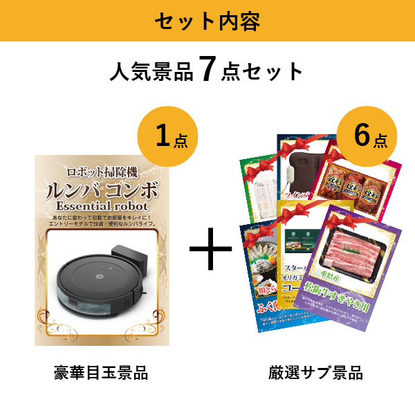 「iRobot ロボット掃除機 ルンバ」をメイン景品とした、メイン景品1点とサブ景品6点を合わせたセット!