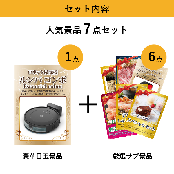 「iRobot ロボット掃除機 ルンバ」をメイン景品とした、メイン景品1点とサブ景品6点を合わせたセット!