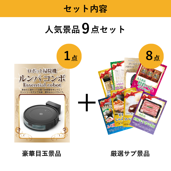 「iRobot ロボット掃除機 ルンバ」をメイン景品とした、メイン景品1点とサブ景品8点を合わせたセット!