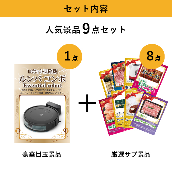 「iRobot ロボット掃除機 ルンバ」をメイン景品とした、メイン景品1点とサブ景品8点を合わせたセット!