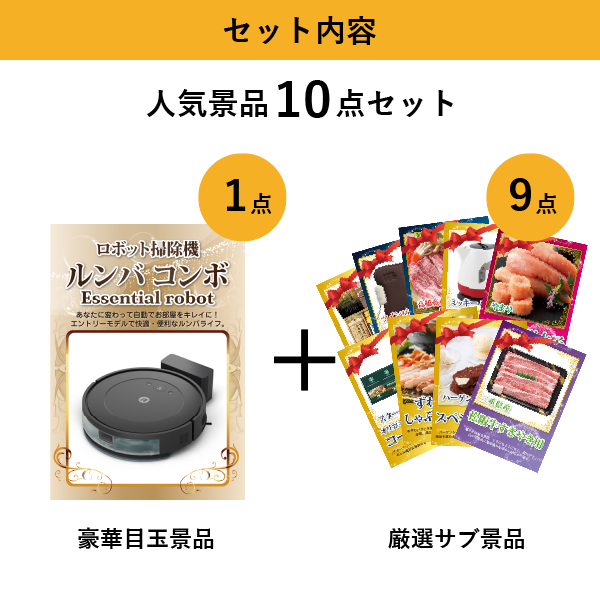 「iRobot ロボット掃除機 ルンバ」をメイン景品とした、メイン景品1点とサブ景品9点を合わせたセット!